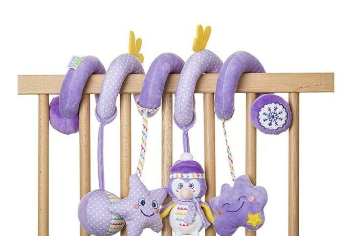 Espiral de tela blandita y suave con sonajeros. Por su fácil sistema de sujeción se puede enrollar en la cuna, la sillita de paseo o en cualquier otro sitio, divirtiendo al bebé allí donde esté. Gracias a su forma, colores y actividades, favorece el desarrollo de la coordinación infantil.